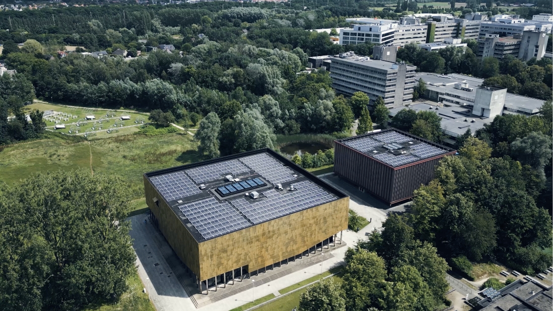 Campus Drie Eiken van de Universiteit Antwerpen is een schoolvoorbeeld van een toekomstgericht project. Voor de bouw ervan werd de groene omgeving intact gehouden, en veel aandacht wordt besteed aan duurzaamheid. De keuze voor een uit de kluiten gewassen zonnepaneleninstallatie was dan ook logisch. 742 zonnepanelen sieren de daken van de twee knappe gebouwen, goed voor een energieopbrengst van 365 MWh per jaar, en een besparing van 48 ton CO2. 94% van de energie zal zelf gebruikt worden.